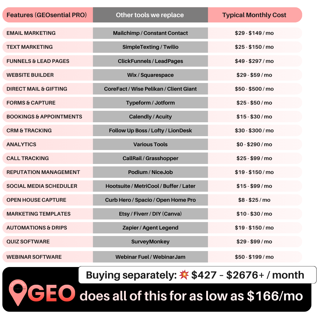 No problem — many agents use GEOsential alongside tools like Follow Up Boss, LionDesk, or kvCORE. Think of GEOsential as your automation hub for everything hyperlocal. It takes what your other systems can’t (direct mail, neighborhood events, Smart QR Codes) and makes them run like clockwork — automatically tagging leads, sending home valuations, and following up with personalized messages